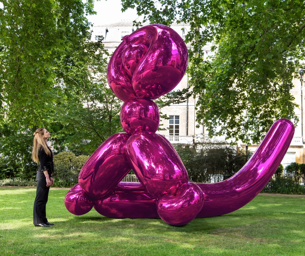 Jeff Koons on yhdysvaltalainen, vuonna 1955 syntynyt kuvataiteilija, joka on kuuluisa suurikoisista, usein leikkisistä ja arvoituksellisista teoksistaan, joista pehmoeläimiä ja ilmapalloista taiteltuja leluja muistuttavat jättiteokset ovat tunnetuimpia ja arvoltaan miljoonien, jopa kymmenien miljoonien eurojen arvoisia. Hänen tunnetuin teoksensa lienee vuonna 2013 myyty Balloon Dog (Orange), joka oli 58.4 miljoonan dollarin kauppahinnalla ainakin sen hetkisessä tilastossa kallein elävän taiteilijan teos.