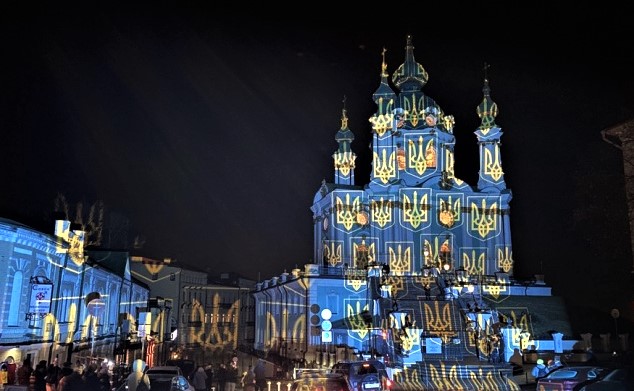 Sveitsiläinen taiteilija Gerry Hofstetter tuli avustajineen ja kollegoineen joulun alla Ukrainan pääkaupunkiin Kiovaan loihtiakseen kaupungin keskeisiin julkisiin rakennuksiin joulun ajaksi ennen näkemättömiä valotaideteoksia.