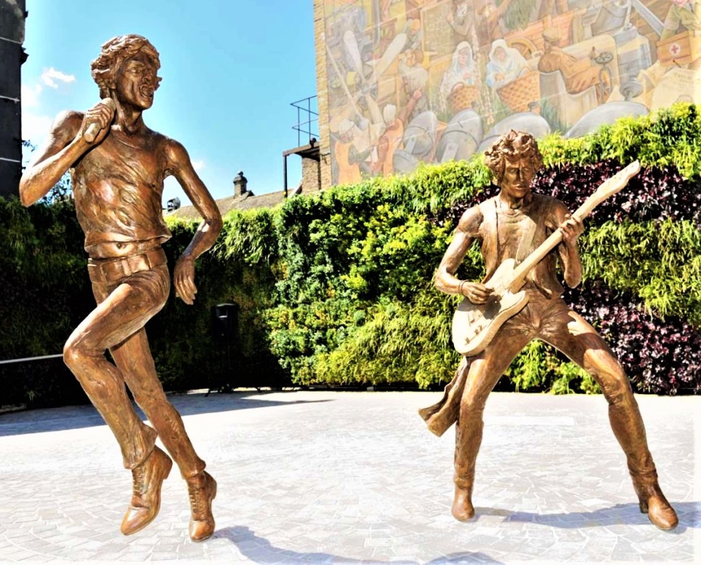 Rock and Roll -musiikin ja koko viihdealan kaikkien aikojen kirkkaimpiin tähtiin jo yli puolen vuosisadan ajan kuuluneet The Rolling Stones -yhtyeen voimahahmot, laulaja Mick Jagger ja kitaristi Keith Richards syntyivät molemmat vuonna 1943 Dartfordissa, suur-Lontoon itälaidalla sijaitsevassa reilun sadantuhannen asukkaan kaupungissa. Elokuun 9. päivänä 2023 kaupunki kunnioitti suuria poikiaan paljastamalla The Glimmer Twins -nimisen muistomerkin, jossa eloisasta lavaesiintymisestään tunnettu Mick ja kitaraansa soittava Keith esitetään dynaamisina nuoruutensa hahmoina. Pronssiset näköispatsaat suunnitteli ja toteutti kaupunkihallinnon toimeksiannosta taiteilija Amy Goodman.